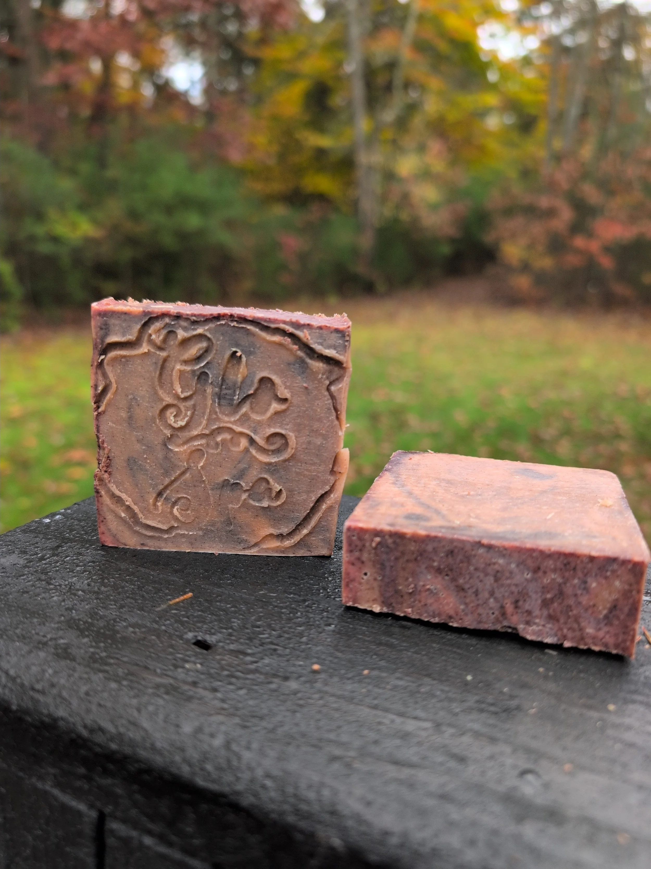 Ingredients: Saponified Olive Oil, Coconut Oil, Palm Oil, Coconut Milk, Castor Oil, Red Kaolin & Activated Charcoal, Cedarwood Essential Oil, Orange, Peppermint Essential oil